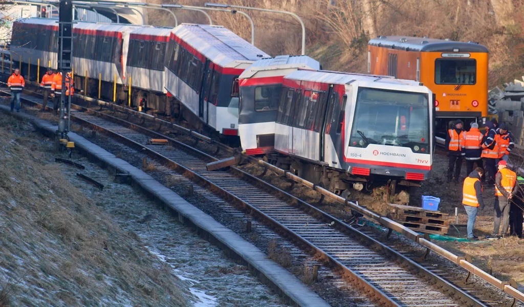 У вівторок ввечері у місті Гамбург, Німеччина, стався інцидент з поїздом метро. Порожній поїзд на лінії U2 на станції Білштедт зійшов з рейок і врізався в опорний брус. Три вагони виїхали з рейок, а задня частина поїзда вдарилася у відбійник. Рух між станціями був тимчасово припинено, а машиніста, який опинився у стані шоку, доставили до лікарні. Є інформація, що один з вагонів міг пошкодити зустрічний поїзд з 172 пасажирами на борту. Людей евакуювали з вагонів через аварійні сходи і перевезли автобусами. Ділянка лінії залишалася закритою до кінця дня, а причини аварії встановлюються.
