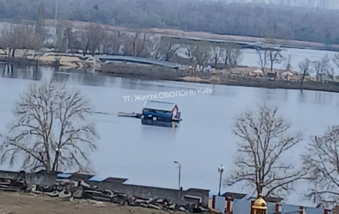У Києві мешканці та очевидці помітили, як будиночок сплавляється затокою Оболонь уздовж набережної. Про незвичну ситуацію повідомляють місцеві телеграм-канали Києва, які публікують фото та відео плавучої споруди.